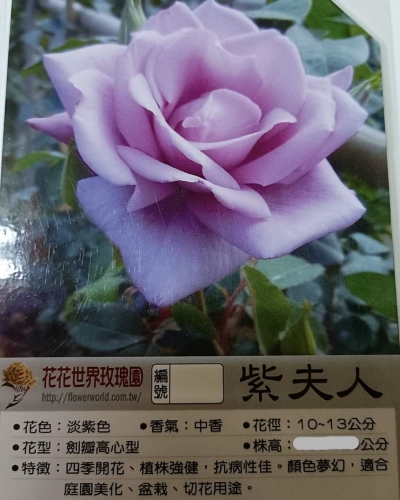 花色:淡紫色,花香:中香,花徑:10-13公分。