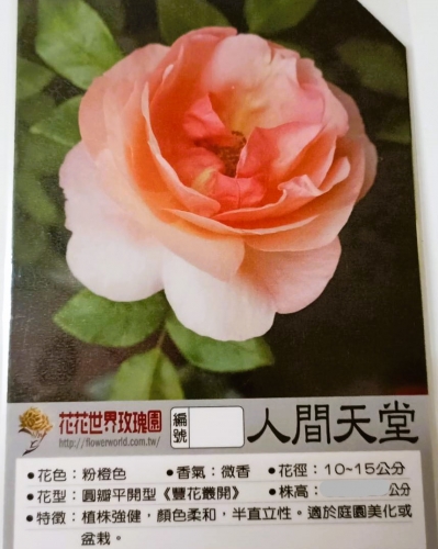 花色:粉橙色,花香:微香,花徑:10-15公分。