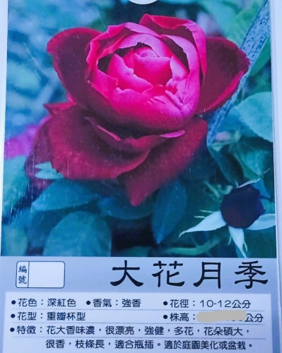 花色:深紅色,花香:強香,花徑:10-12公分。