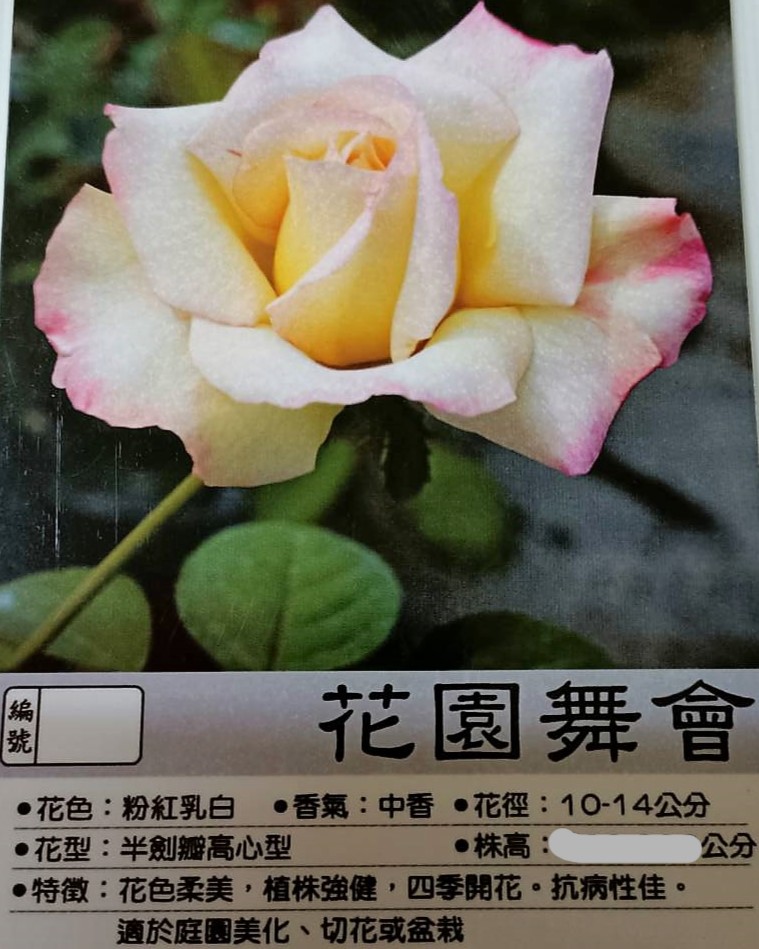 花色:粉紅乳白色,花香:中香,花徑:10-14公分。