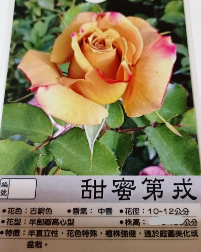 花色:古銅色,花香:中香,花徑:10-12公分。