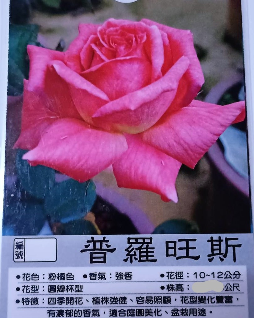 花色:粉橘色,花香:強香,花徑:10-12公分。