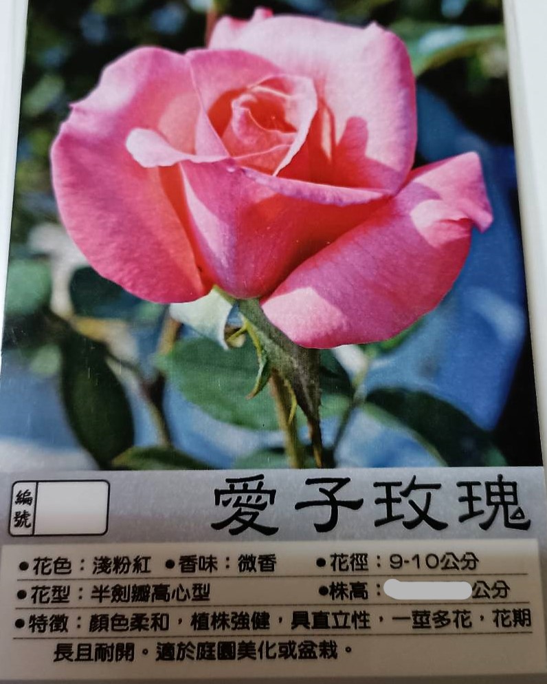 花色:淺粉紅色,花香:微香,花徑:9-10公分。