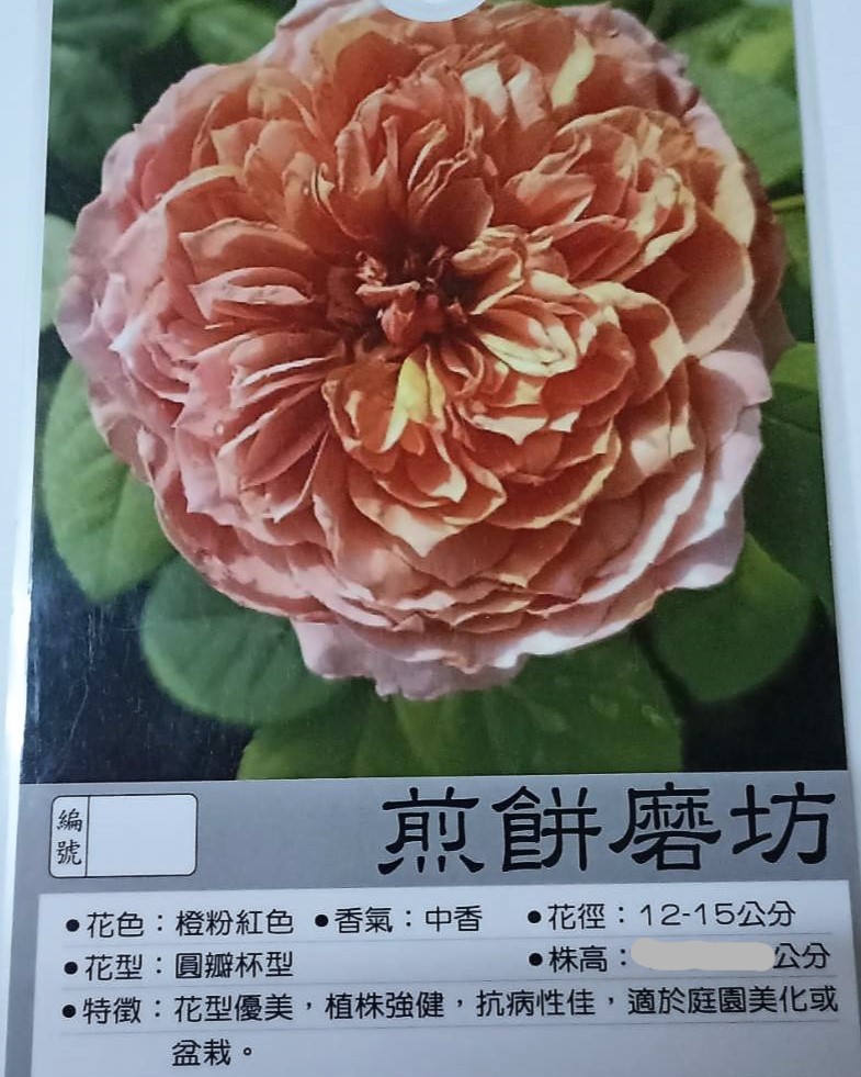 花色:橙粉紅色,花香:中香,花徑:12-15公分。