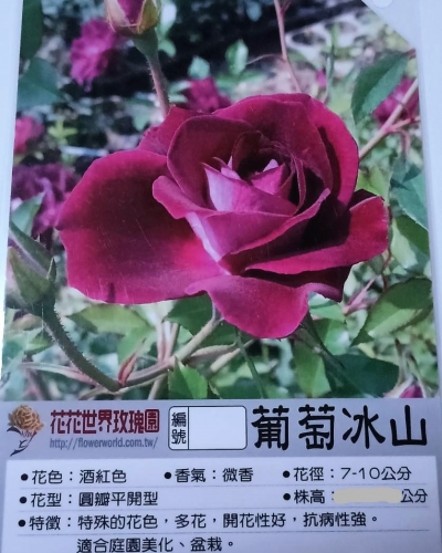 花色:酒紅色,花香:微香,花徑:7-10公分。