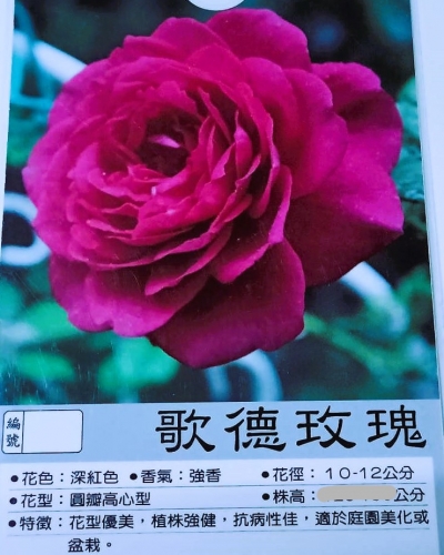 花色:深紅色,花香:強香,花徑:10-12公分。