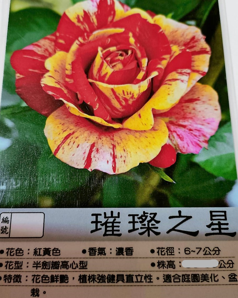 花色:紅黃色,花香:濃香,花徑:6-7公分。
