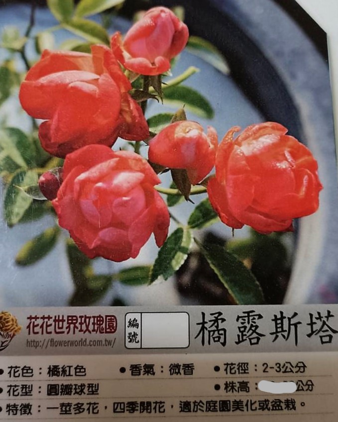 花色:橘紅色,花香:微香,花徑:2-3公分。