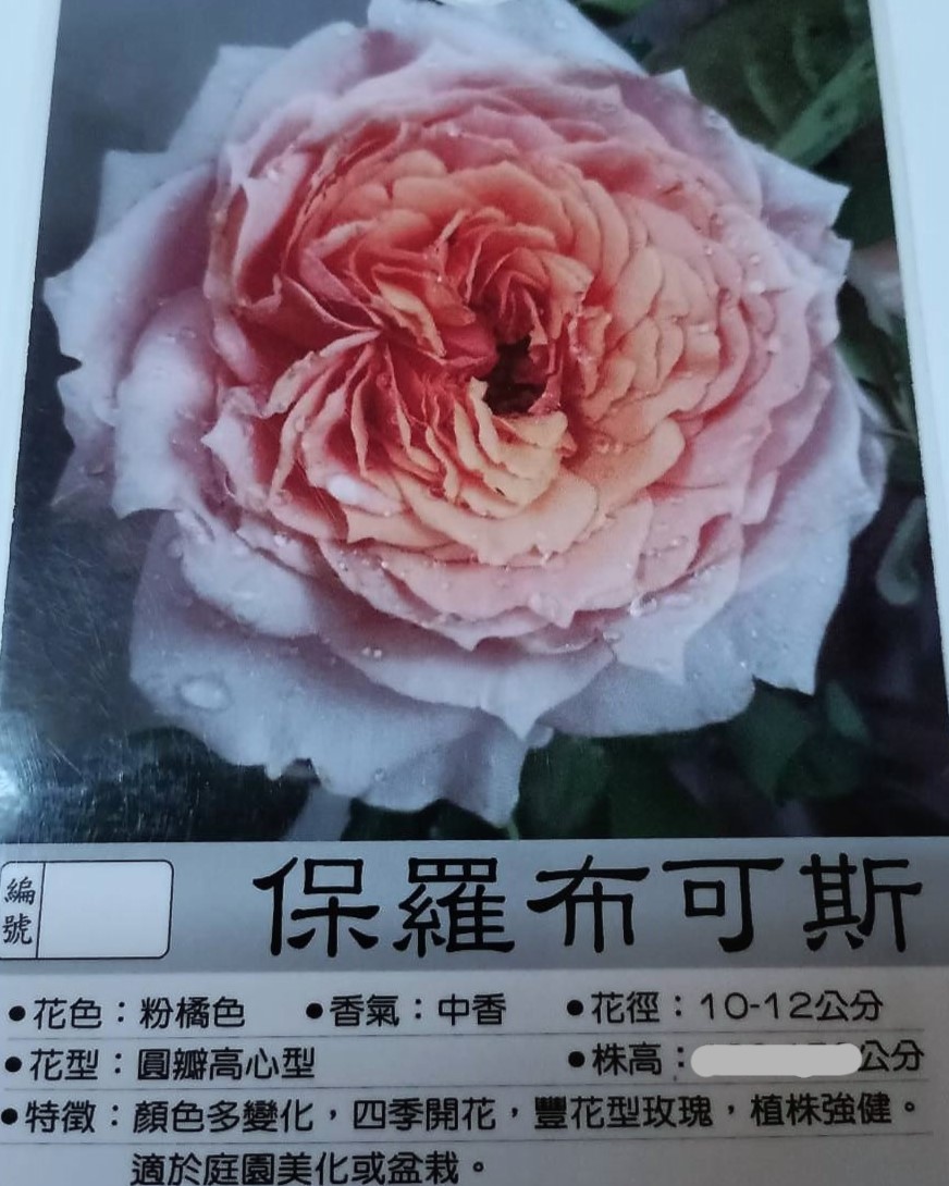花色:粉橘色,花香:中香,花徑:10-12公分。