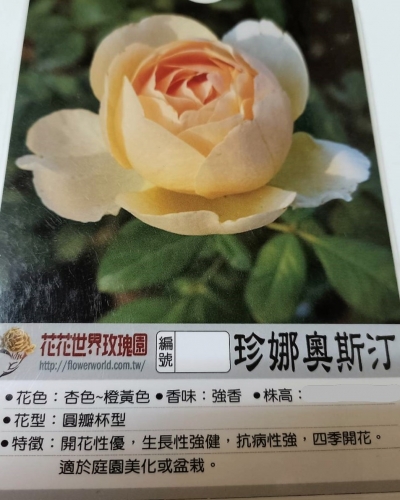 花色:杏色~橙黃色,花香:強香,花徑:6-10公分。
