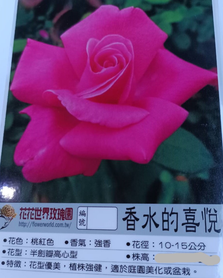 花色:桃紅色,花香:強香,花徑:10-15公分。