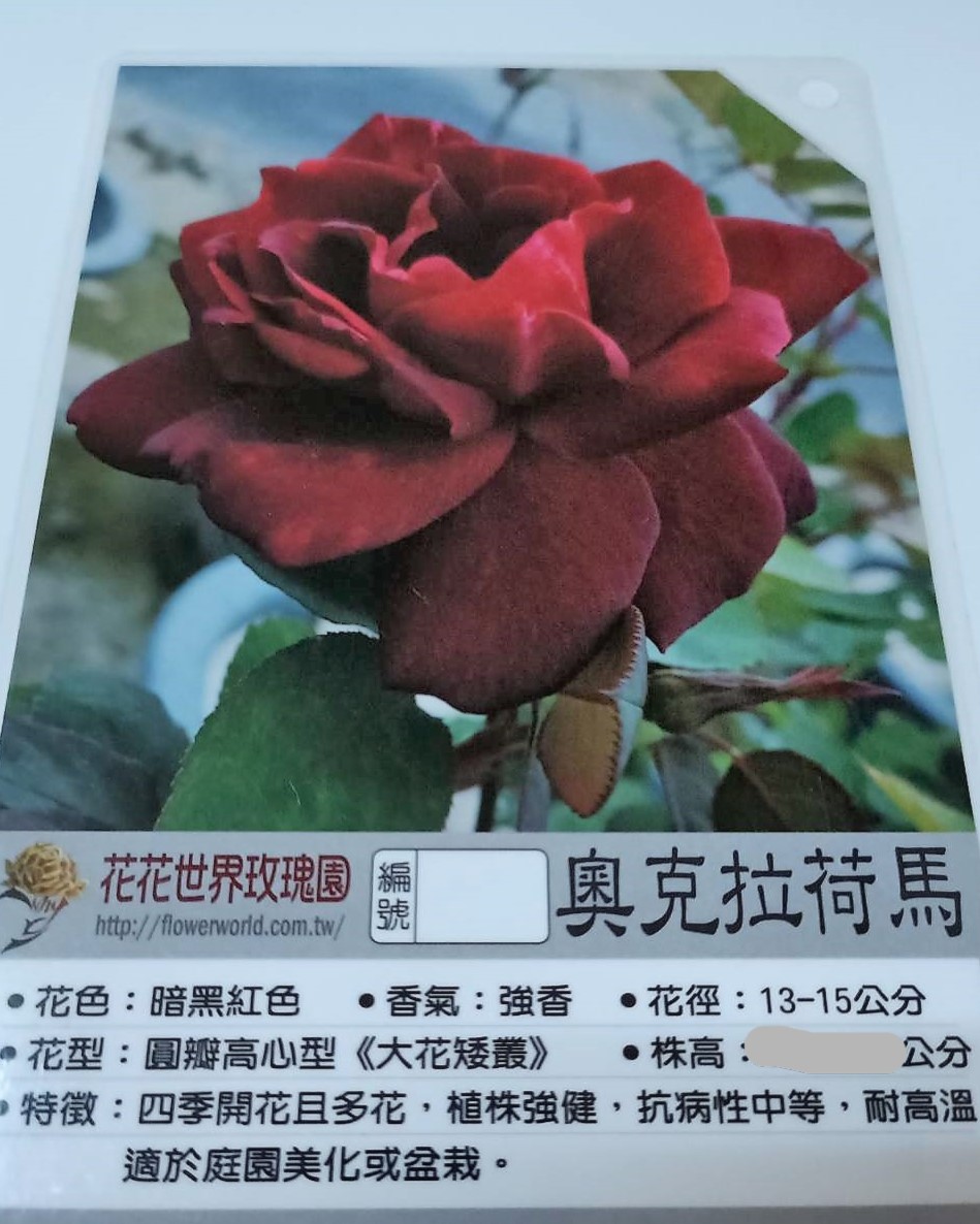 花色:暗黑紅色,花香:強香,花徑:13-15公分。