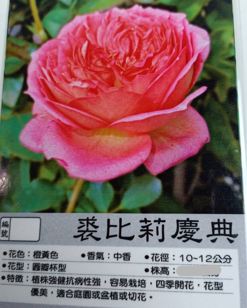 花色:橙黃色,花香:中香,花徑:10-12公分。