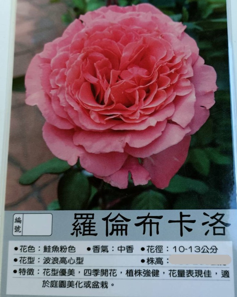 花色:鮭魚粉色,花香:中香,花徑:10-13公分。