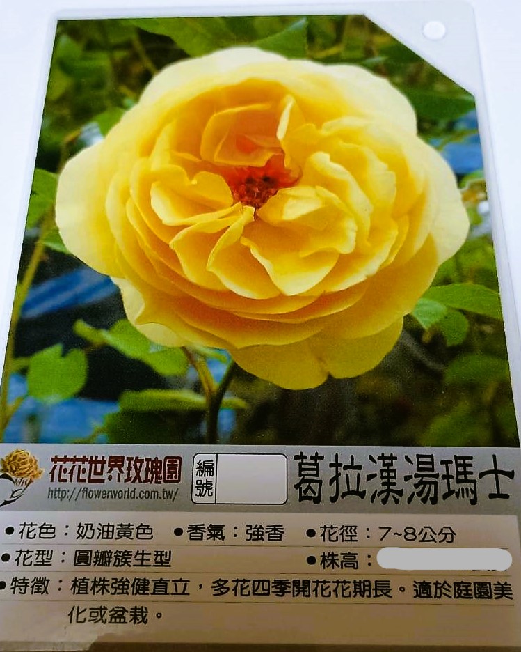花色:奶油黃色,花香:強香,花徑:7-8公分。